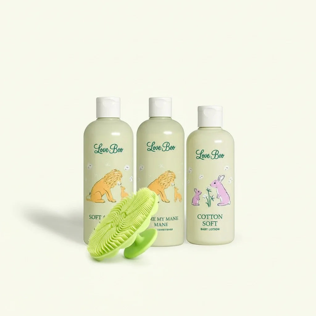 Say goodbye to tears and tangles with our Sweet Swishy Bundle! The Soft & Swishy Gentle Shampoo combines the nourishing power of argan oil, coconut, fig, and papaya to keep your little one's hair soft and manageable. Pair it with the Tame My Mane Gentle Conditioner, which uses argan oil, coconut, and fig to moisturize and tame those locks. The bundle also includes a Soft Silicon Brush for a soothing bath time massage and a Cotton Soft Baby Lotion made with Tahitian monoi, pomegranate extract, and cotton seed oil for kissably soft skin. Enjoy pampering your little one with these natural, gentle products!