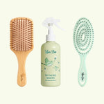 Experience the ultimate hair care bundle with our Love Boo Wooden Brush, No More Knots Detangling Spray, and Detangler Air Comb. The wooden brush features a natural rubber cushion base and a wooden handle with a Carnauba wax finish, all in compostable packaging. Our detangling spray with argan oil, fig, and coconut gently releases knots and calms flyaways while nourishing and hydrating hair. Glide through knots effortlessly with the air-cushioned comb, reducing breakage and leaving hair smooth and soft. Say goodbye to tangles and hello to luxurious hair care with this bundle.