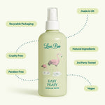 A helping hand for sticky fingers and wild flyaway. This gentle skin freshener and light hair styler features nourishing Aloe vera and vitamins in a water-light formula that leaves no residue. Use it to wipe the day away and smooth their little strands clean, soft, and refreshed.